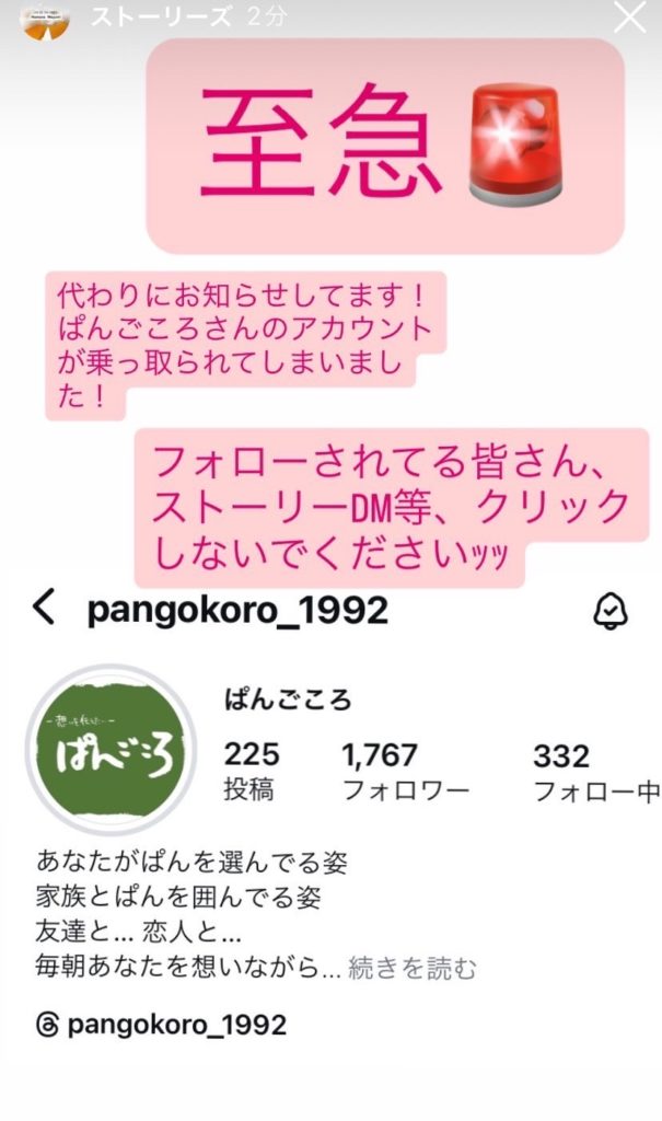 この度、「ぱんごころ」の公式Instagramアカウントが、第三者に乗っ取られていたことが判明いたしました。